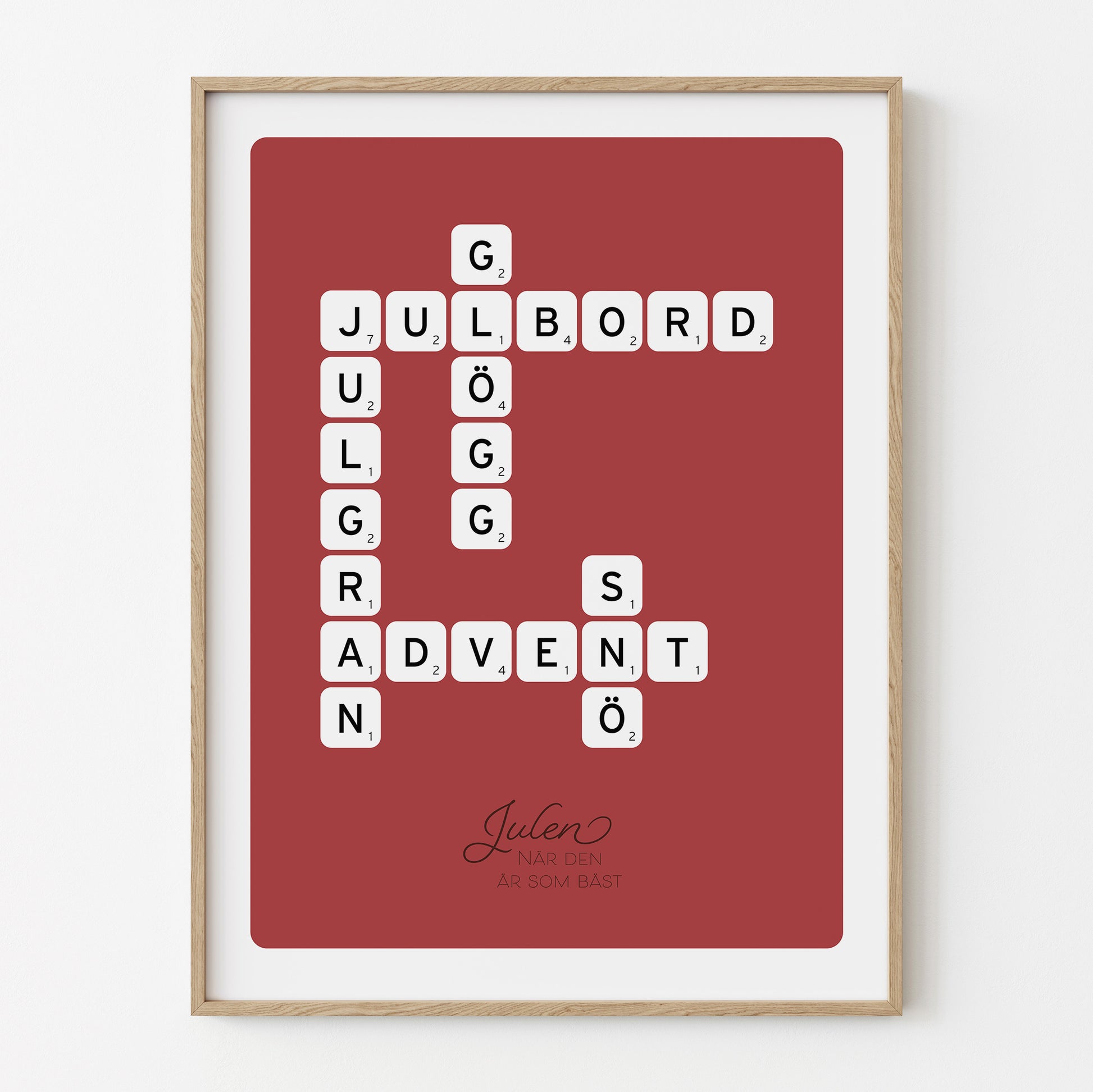 Julen i ett nötskal sammansatt i ett korsord med bokstavsbrickor inspirerade av Alfapet och Wordfeud. Ett enkelt och lekfullt sätt att förhöja julkänslan i hemma hos dig själv, eller ge bort som en uppskattad julklapp.
