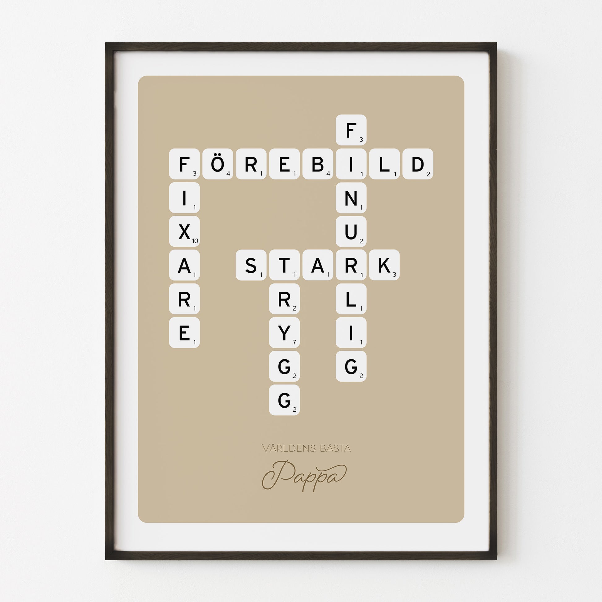 Visa din pappa hur mycket han betyder med en alfapet-inspirerad poster som verkligen hyllar honom – världens bästa pappa! Med ord som fångar hans styrka, finurlighet och trygghet blir det en kärleksfull påminnelse om allt det han gör varje dag. Postern är lika lekfull som hjärtlig och passar perfekt som stilren inredning på kontoret, i vardagsrummet eller på hans favoritplats i hemmet.